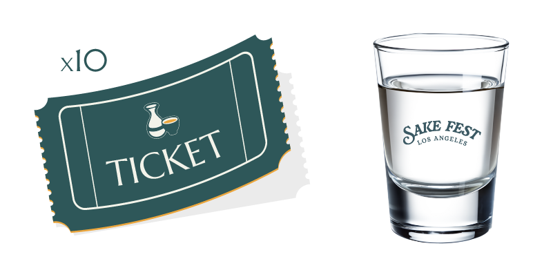 includes 10 sake tasting tickets, 3 PREMIUM sake tasting tickets, shot glass, masu cup, guide book, and food pairing plate